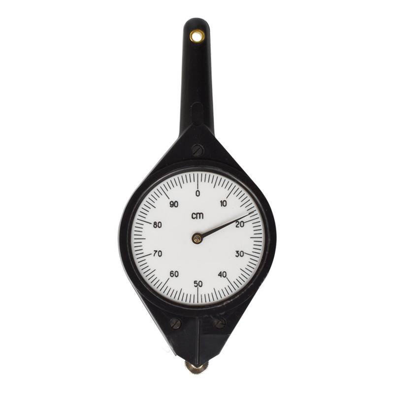 Курвиметр механический имеет метрическую и дюймовую шкалу. Цена деления метрической шкалы соответствует 1 см, дюймовой 0,05 дюйма. Погрешность измерения отрезка длиною 50 см не превышает 0,5%.